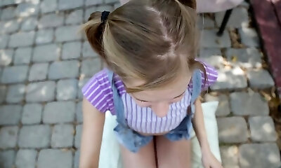 Eighteen yo babysitter in denim jeans is face fucked before rough anal romp