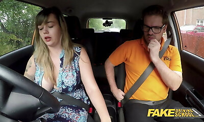 Fake Driving School Immense British boobs one last lesson