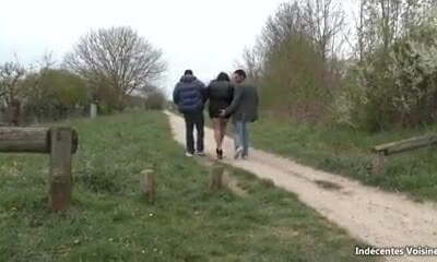 French brunette gets double romped by two robbers