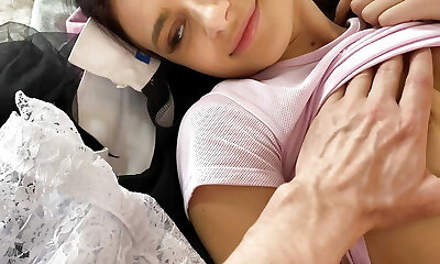 Petite Teenie Lets Her Horny Step-bro Play With Her Shaven Puffy Pussy Before He Impales It On His Boner