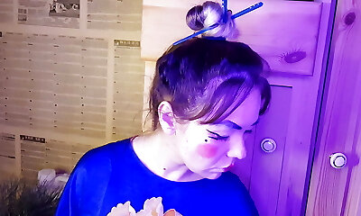 smoking steaming babe estimula su polla-squeezing poon a un verdadero orgasmo que se contrae