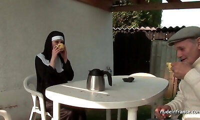 joven monja francesa enculada en trío con papy voyeur
