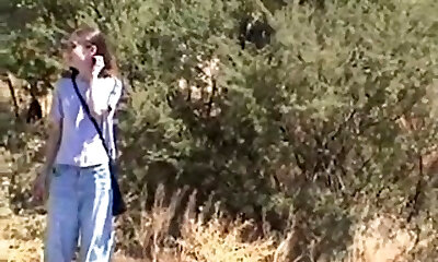 همسر هیجان زده متوقف می شود ماشین به فاک و مکیدن و سرنگ در کنار جاده