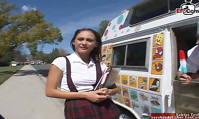 کون, مکزیکی, دخترک معصوم, کیرا پرز میدارد تا یک مرد خجالتی و اشک او را در ون