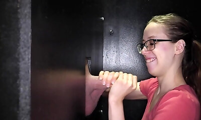 foxy stunner se fait baiser dans les toilettes à travers gloryhole
