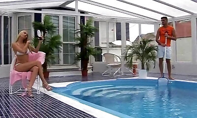 пышногрудая platynowa blondynka słodka chloe, chanel pływa w basenie