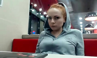 Top notch redhead hottie has joy with her Bf in shopping mall